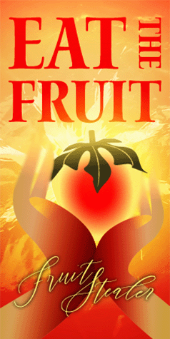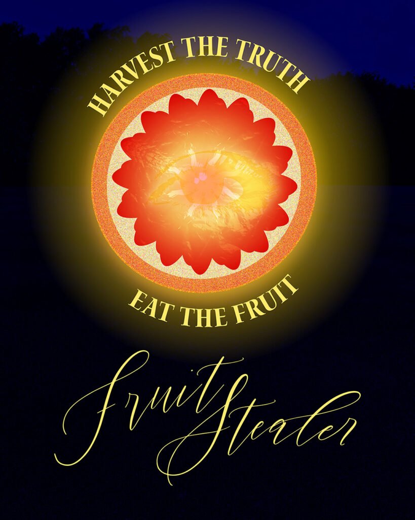 Haiku – “ENLIGHTEN ME, EAT – HARVEST THE TRUTH, THE RED FRUIT – BE A FRUIT STEALER” and Fruit Stealer Logo