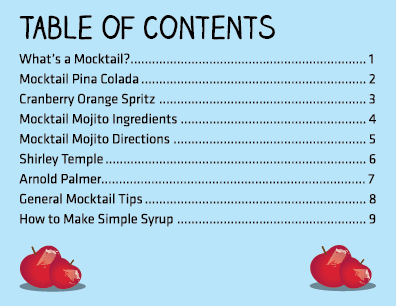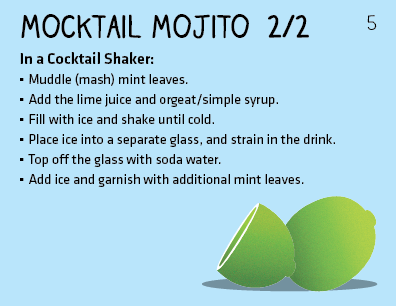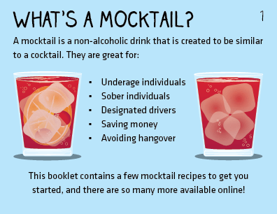 Create a mocktail booklet to inform students of non-alcoholic alternatives for Red Zone Promotion.