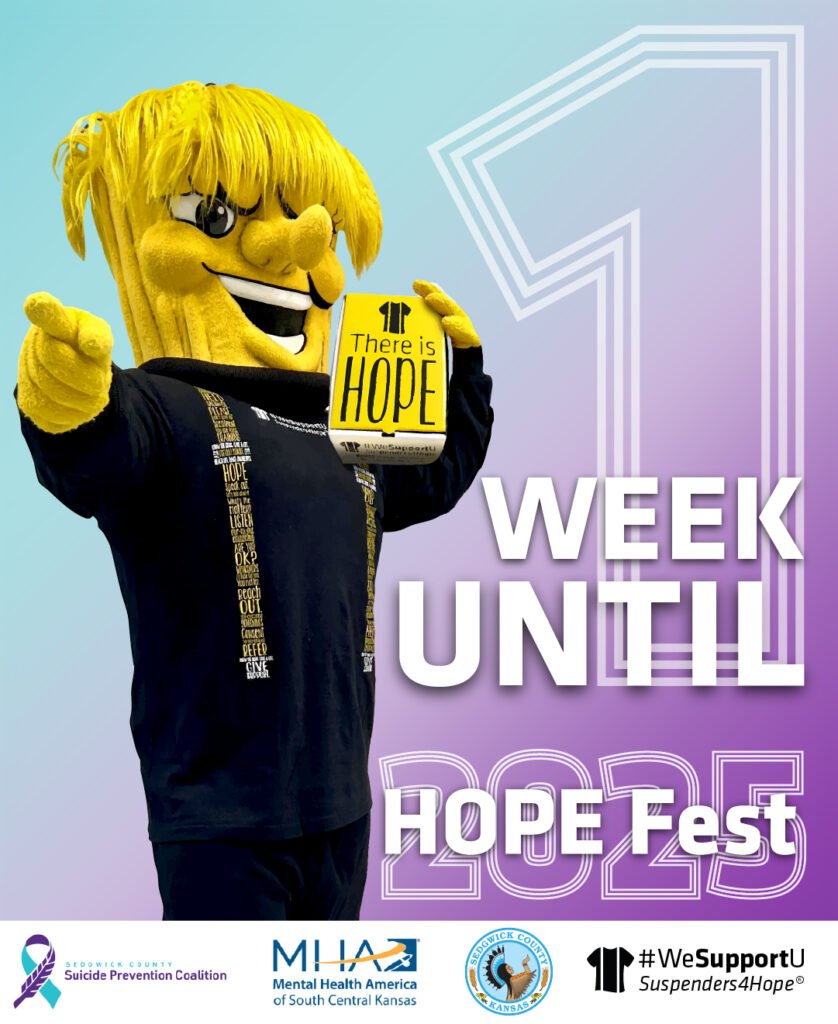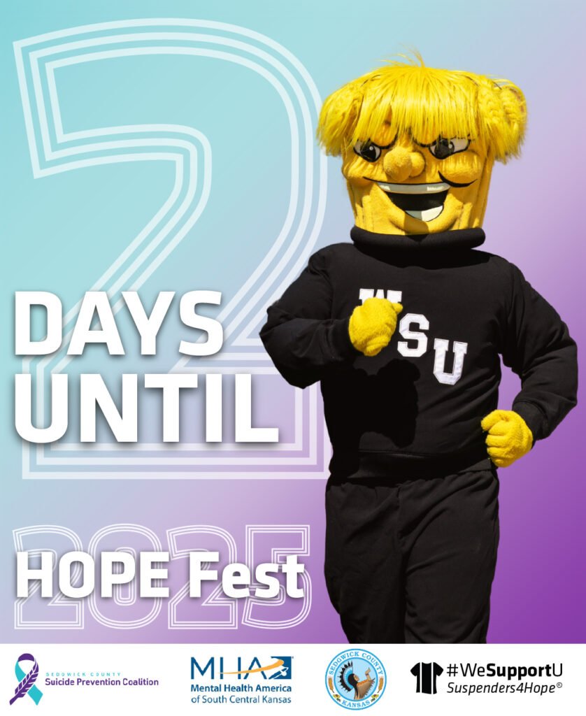 Create a series of social media graphics and accompanying copy to promote HOPE Fest 2025, a campus and community event supporting mental health and suicide prevention at Wichita State University.